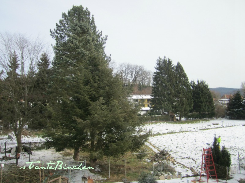 So sah das noch heute morgen aus. Der eine Baum total kaputt, der andere unförmig und für den Garten hinterm Haus einfach nicht mehr tragbar....